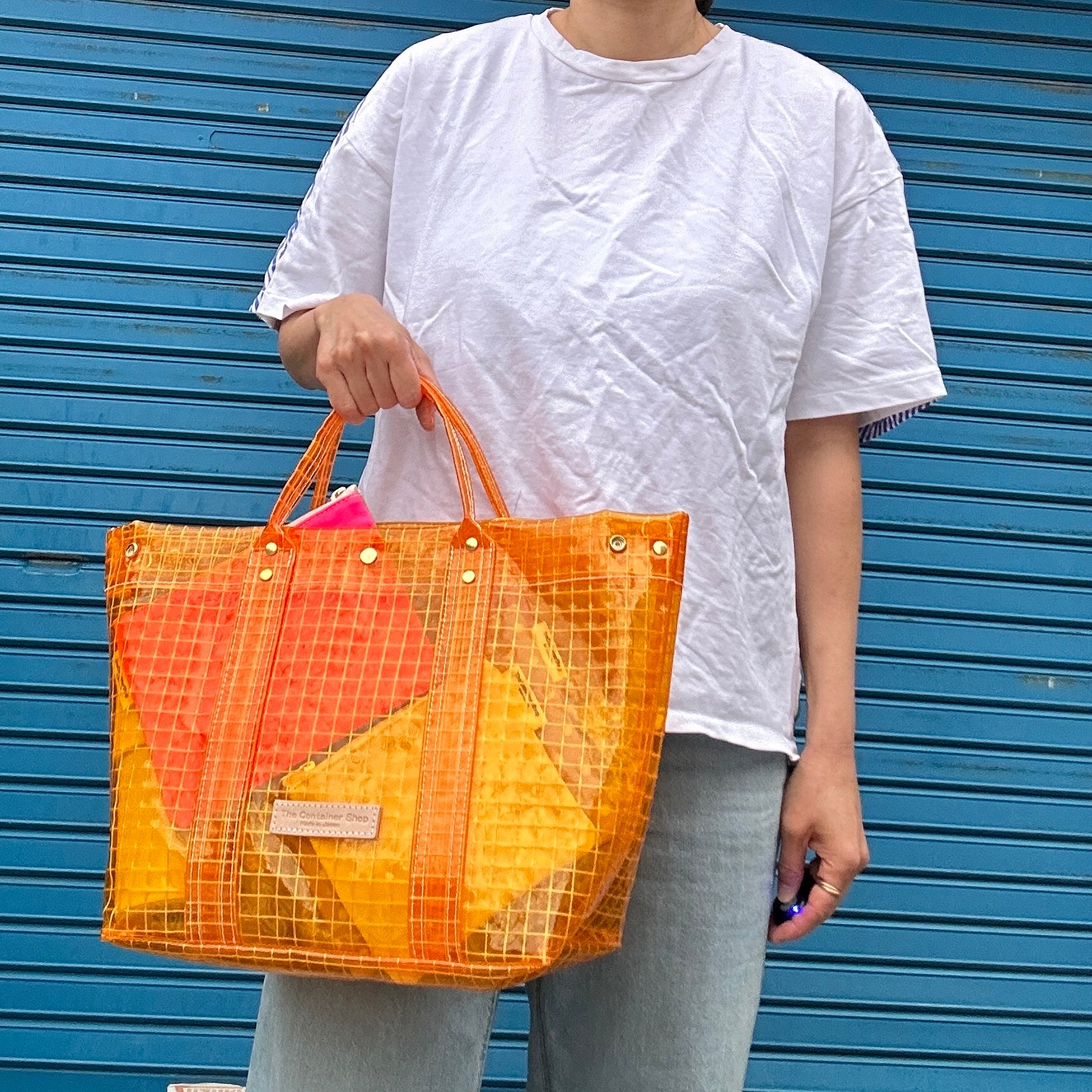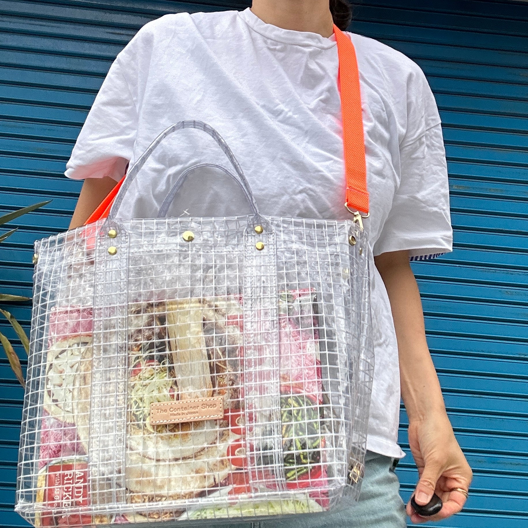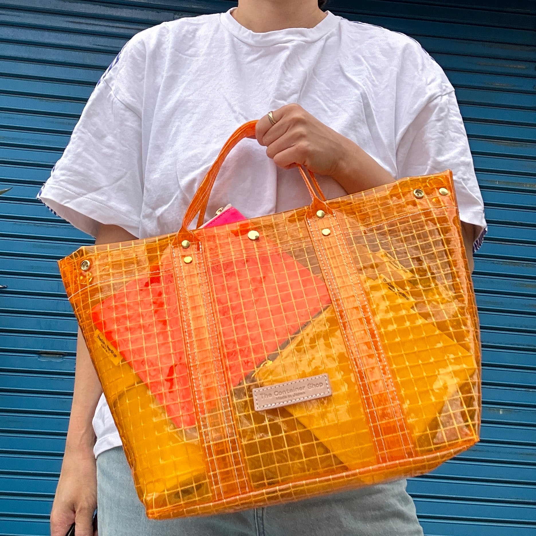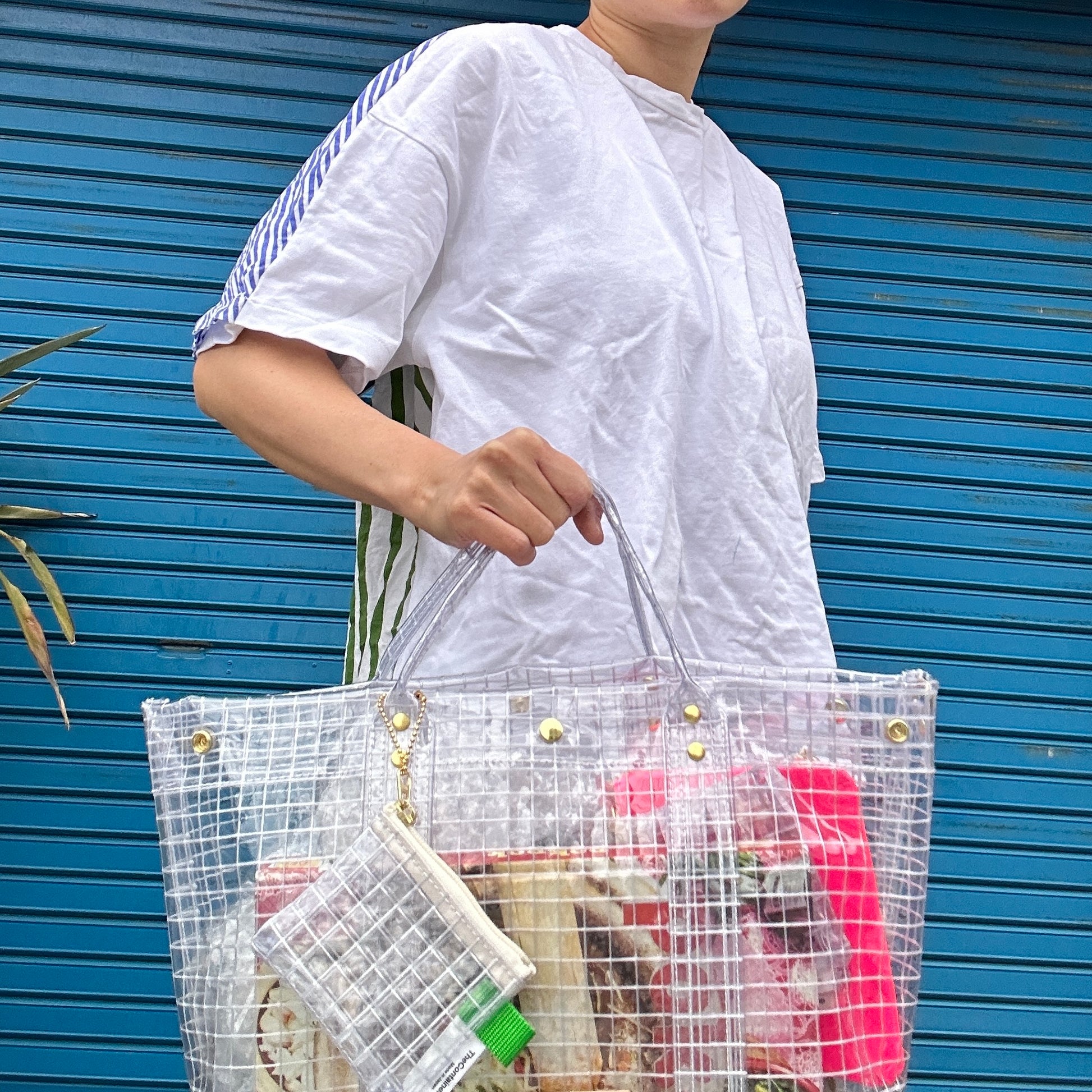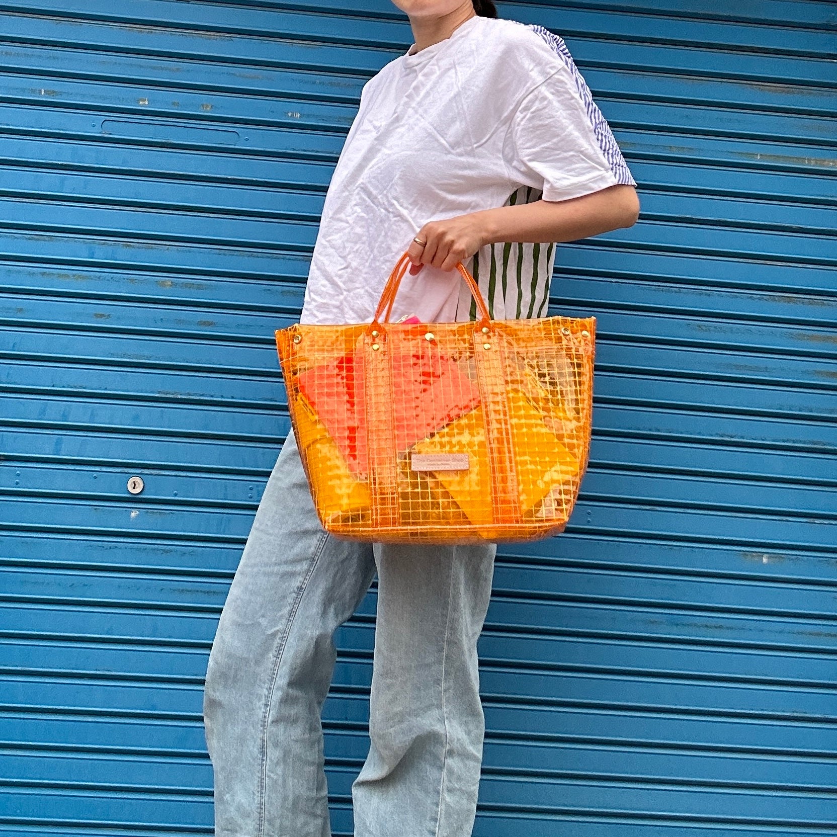 It's completely clear, so it's recommended for rainy days or as a beach bag.