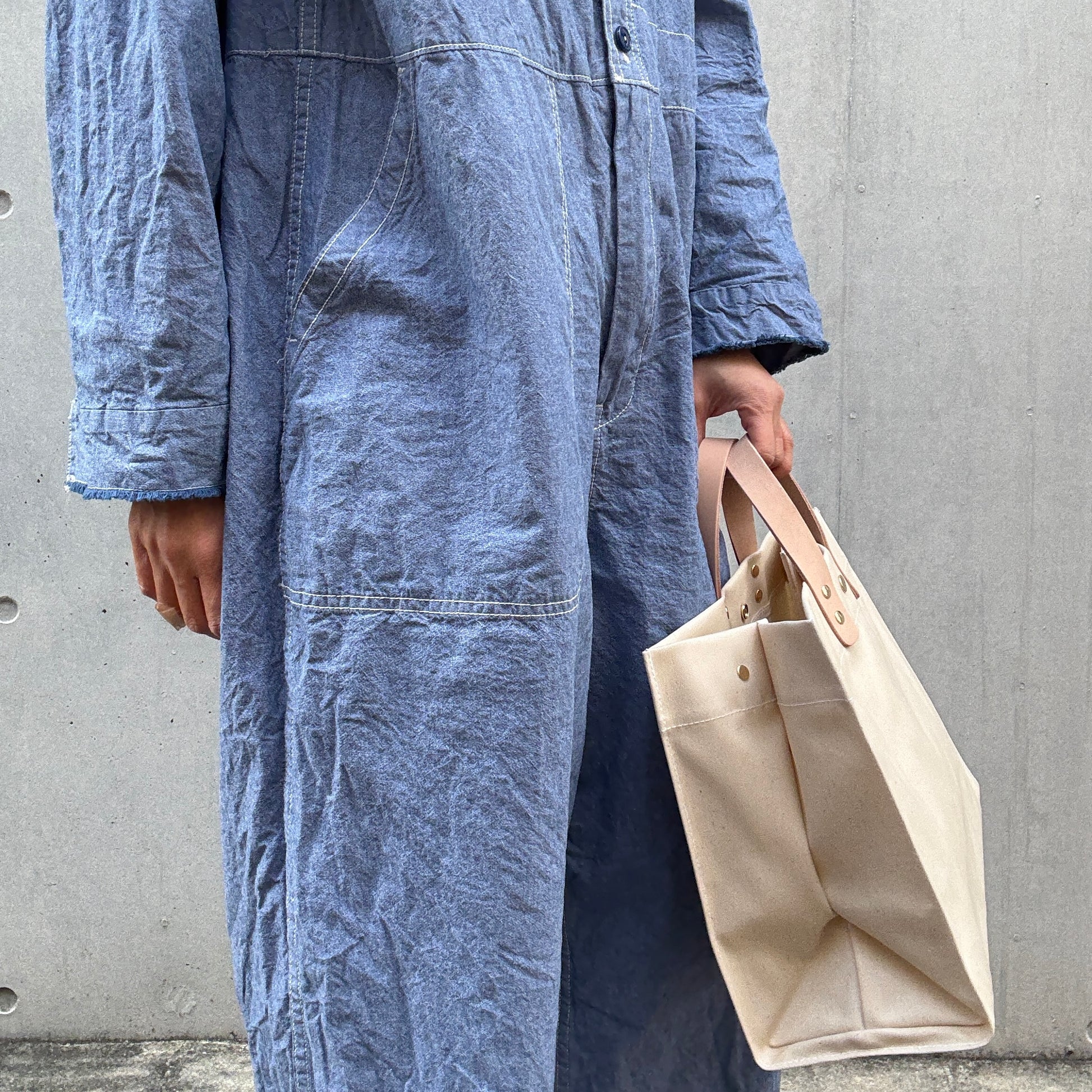 PVC加工の軽いバッグを探していました。大きすぎず、きれいなカラーでアクセントになりそうで使うのが楽しみです。バッグの色としてはとても気に入っていますが、サックスのショルダーストラップは子供っぽくなってしまうので持ち手と同じヌメ革も選べたら嬉しかったです。