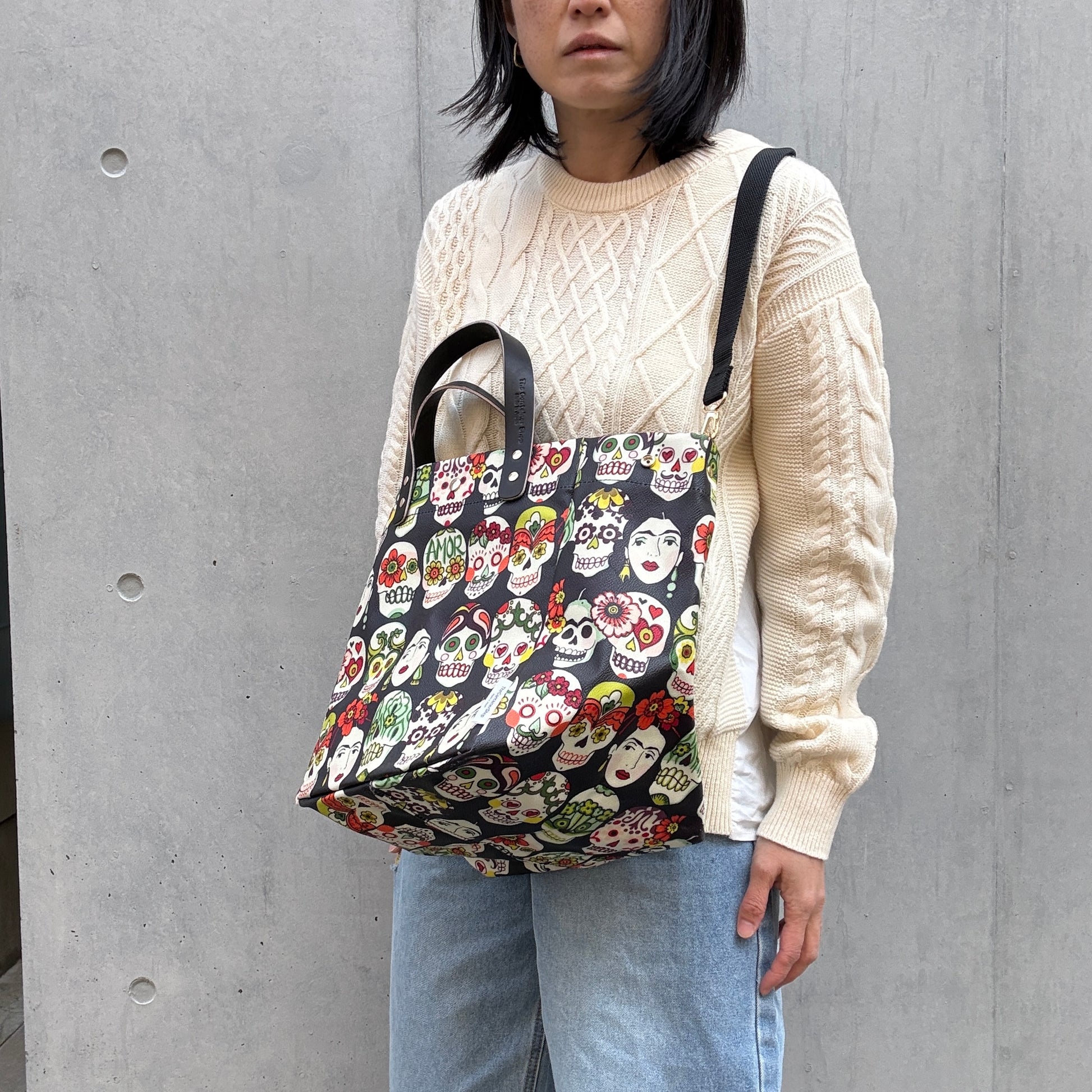 両側のホックを留めるとデザインが変わります。
